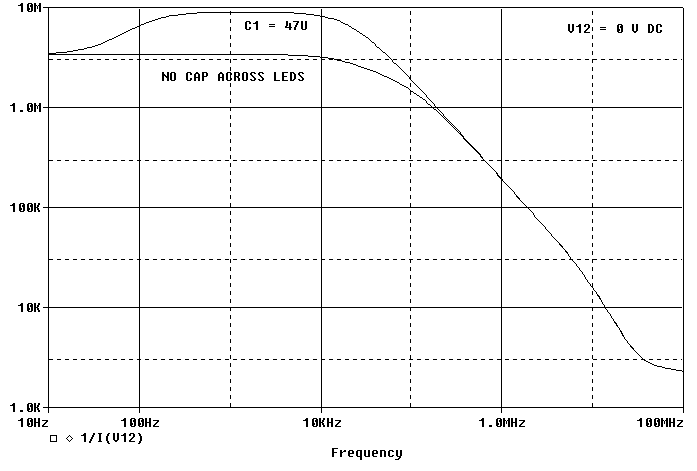 Now lets check the curve out with and without C1, the LED bypass capacitor.