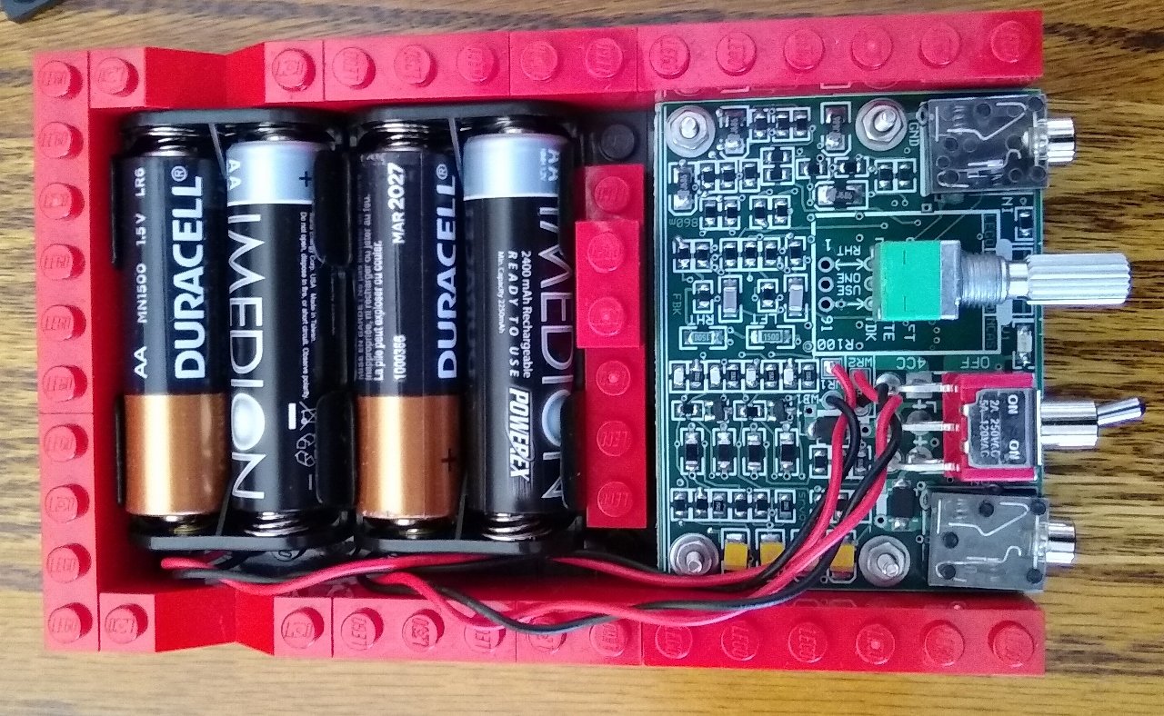 Be easily modified to work from 8 AA batteries (+/- 6V peak, +/- 4.8V nom) for higher impedance headphones. (8 batteries are needed to be 6.6 dB louder)