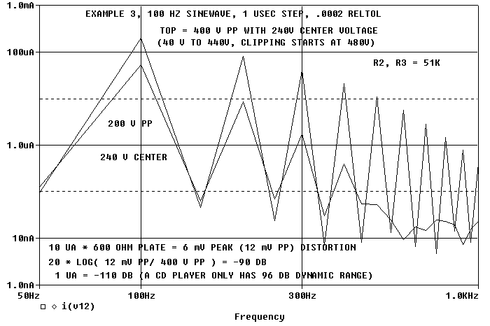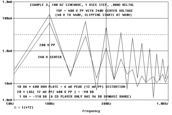 about 90 dB down. As we back off from 400 V pp, things get better fast.