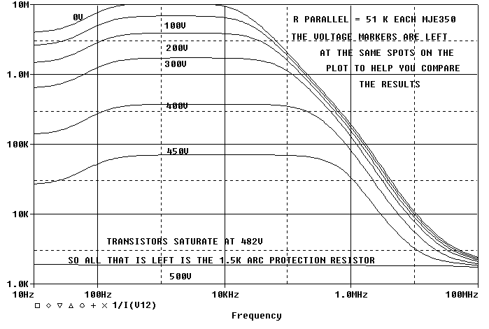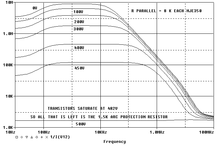 To handle the same SOA as the 8 K parallel version, we would have to have 5 sets of 51K parallel version to get the same SOA. This would drop the output impedances by 5. The 8K to 51K variation in Z_out is much less than 5:1.