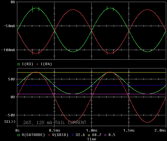 I just made up the 20W idle bias point and arbitrarily picked a class A load for the EL34. This is what the test circuit looks like.