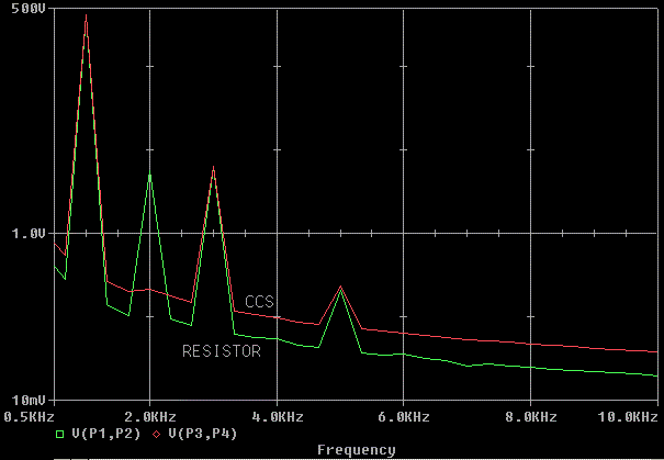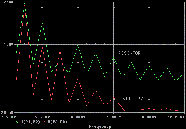 Here's the Fourier of the load voltages. Notice that the CCS'd version is
