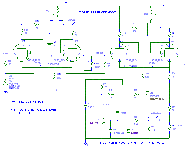 1. CCSs on both on the cathode of a long tail pair and on the plates at the same time are a bear to get balanced so it operates nicely. I've got a circuit in mind to fix this. I'll put it on this page when it looks viable.