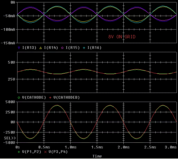 voltages look like. P1 to P2 is the voltage on the load (speaker.) Notice