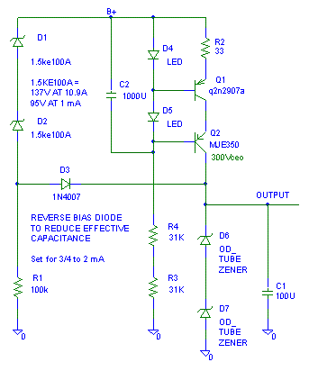using for R1 or to use R = B+/ 0.5 A. I used a 1N4148 for the base emitter