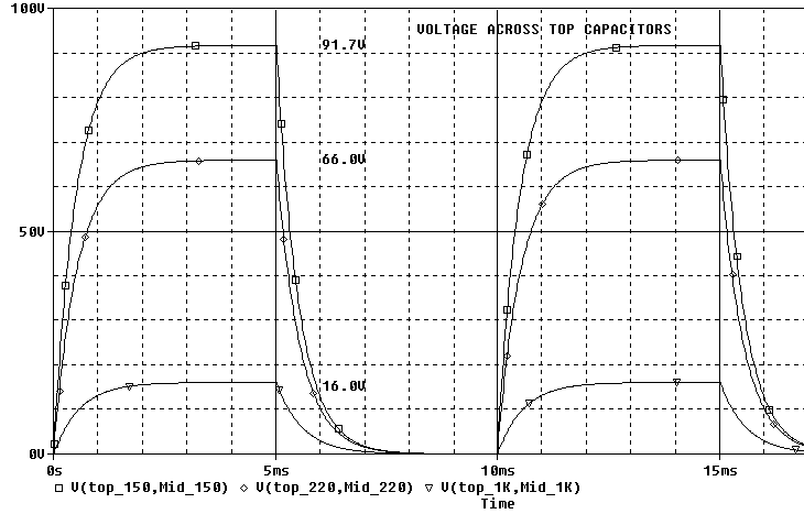 Below is what the voltage across the top capacitors look like.