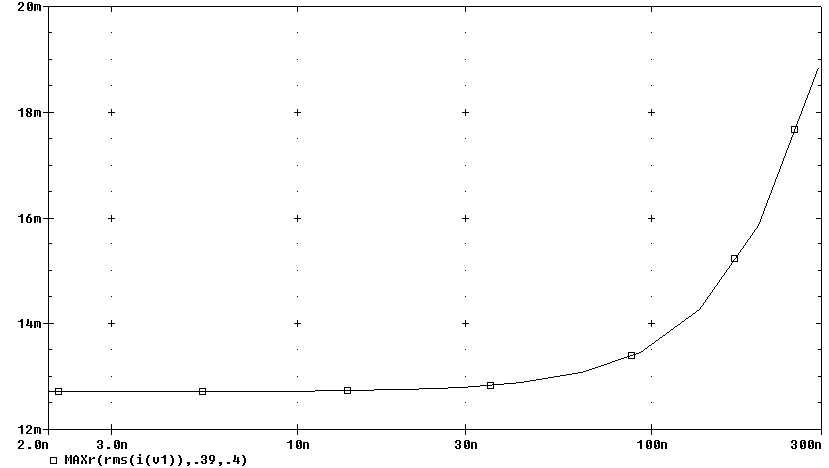 I modeled the snubber current in Pspice, any snubber much larger than 0.15 uF total capacitance starts to significantly increase the Foreplay transformer current. The Pspice model was more complex than the model shown above. The following chart shows the Foreplay HV transformer secondary RMS current versus the total snubber capacitance.