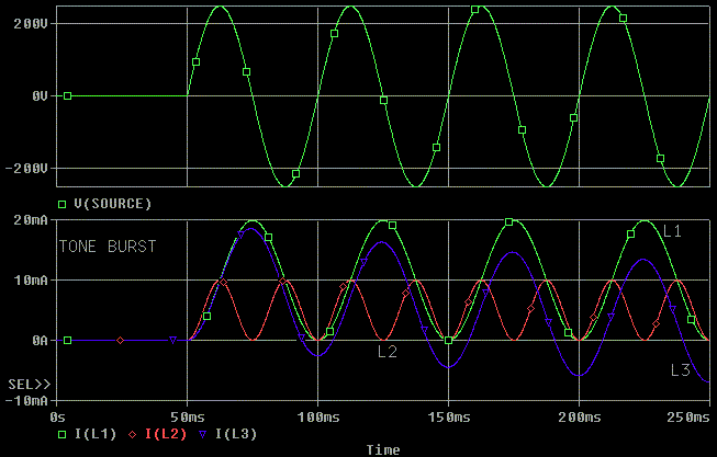 Now, let's just put a tone burst into an inductor. Remember, the inductor